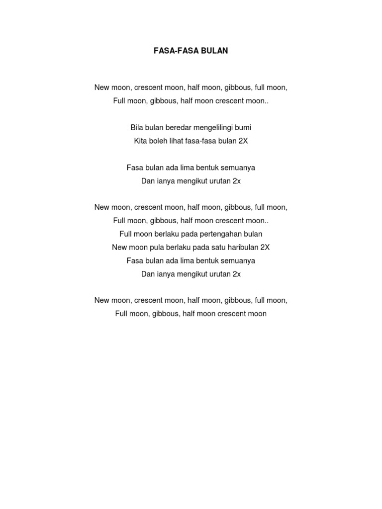 Doc Lirik Lagu Fasa Bulan Amar Saaidin Academia Edu